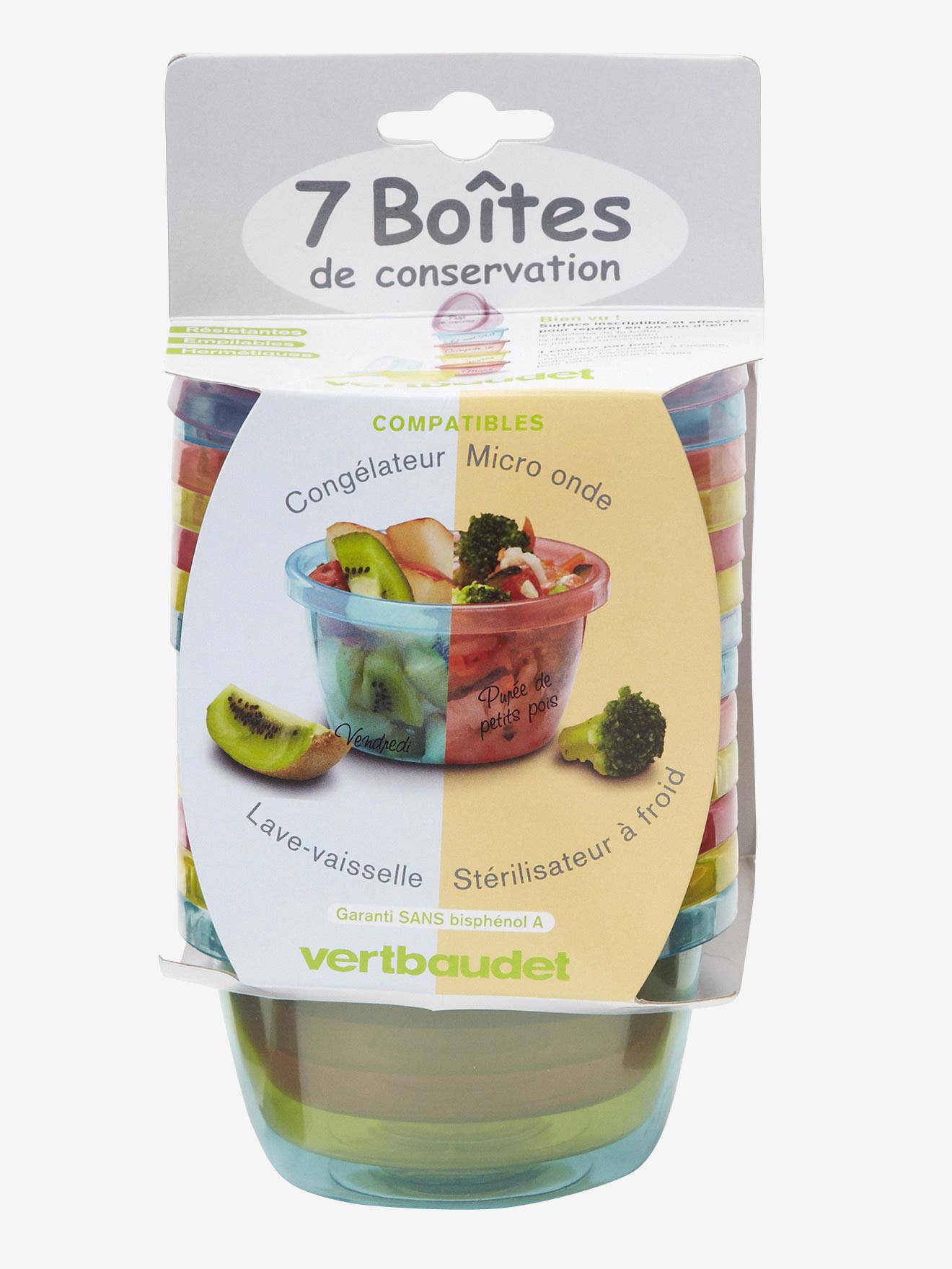 7er-Pack Vorratsdosen von vertbaudet: Polypropylen, garantiert frei von Bisphenol A.