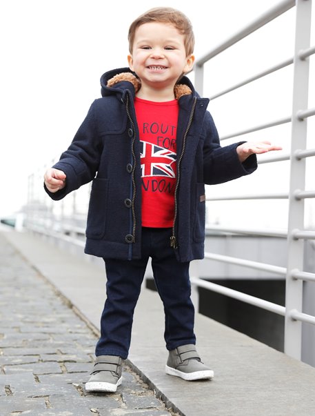 Detailinformationen:Stylischer Retro-Touch für den Winter: Jungen Duffle-Coat aus hochwertigem Woll-Mix. Der macht aus wilden Räubern im Handumdrehen kleine Gentlemen. Warm hält der schicke Wintermantel selbstverständlich auch - das dicke Futter ist weich wattiert. Praktisch für die Kita: das beschreibbare Namensetikett innen.
