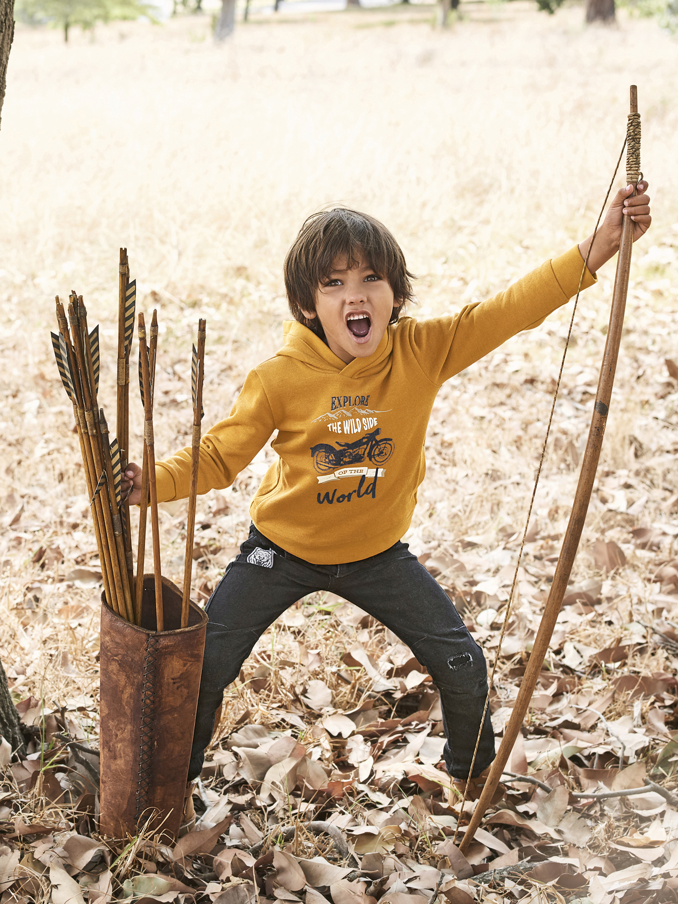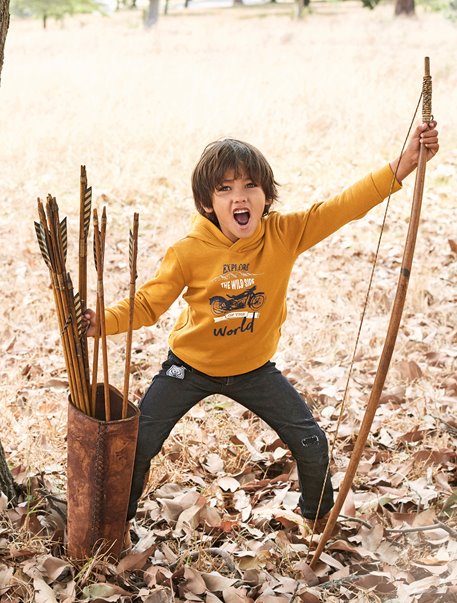 Die Jungen Kapuzenshirt macht das Trend-Outfit herbsttauglich. Jeans und Sweatshirt und ab gehts ins Abenteuer! Produktdetails: Jungen Kapuzen-Sweatshirt: Melierte Sweatware, 80 % Baumwolle, 20 % Polyester. Grün: reine Baumwolle. Kapuze. Flockprint und Aufdruck (je nach Farbe unterschiedlich). Rippenbündchen.