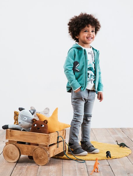Selber angezogen, und sogar richtig herum: Die trendigen Lederboots für Jungen lassen sich mit Klettriemen kinderleicht anziehen. Damit dabei der richtige Kinderschuh am richtigen Fuß landet, gibt es Geheimzeichen an der Sohle. Auch der Komfort stimmt: die solide Verarbeitung bietet sicheren Halt und Bewegungsfreiheit bei den Abenteuern des Alltags.