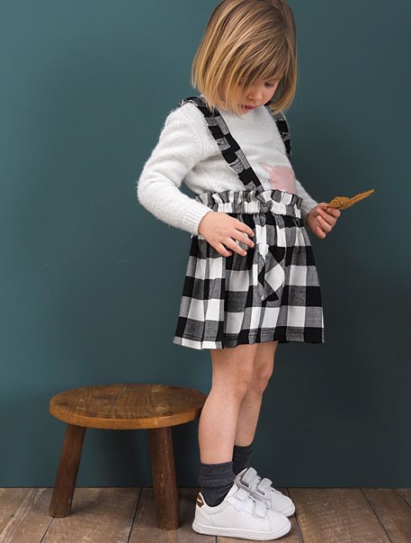 Karierter Träger-Rock für Mädchen: Serge, 100 % Viskose.